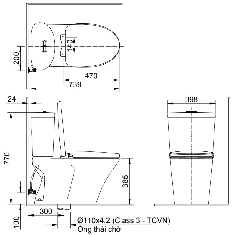 Bản vẽ bệt inax AC 700 nắp điện tử CW-H17 VN