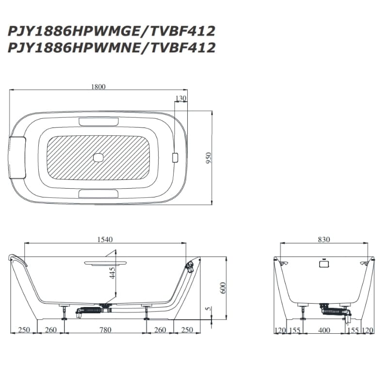 Kích thước bồn tắm TOTO PJY1886HPWMNE: