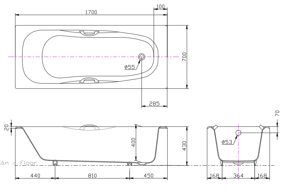 Tên sản phẩm | : | Bồn tắm gang tráng men DB503R-2A: Bộ xả nhấn (thoát thẳng) DB503R-2B: Bộ xả nhấn (thoát ngang) * Mặt bồn chống trượt |