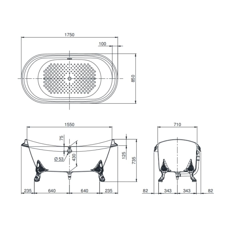 Với kích thước rộng x sâu x cao lần lượt là 1750 x 850 x 735 mm, bồn tắm gang tráng men TOTO FBY1756PTGE#W không chiếm quá nhiều không gian phòng tắm. Bên cạnh đó, kiểu bồn này phù hợp đi kèm với vòi xả đặt sàn TOTO để đem lại sự thuận tiện hơn cho người dùng khi sử dụng.