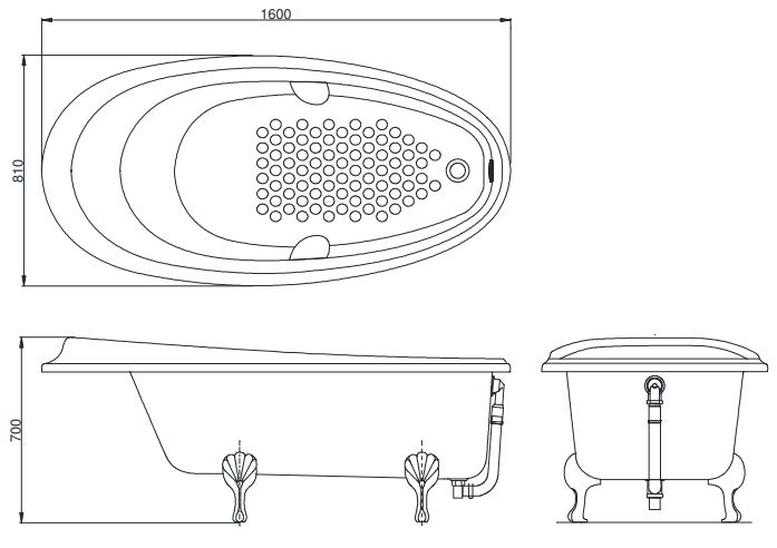 Bồn Tắm Ngọc Trai ToTo PPY1610HIPTE#S - chân đế mạ bạc, có tay vịn tiện lợi