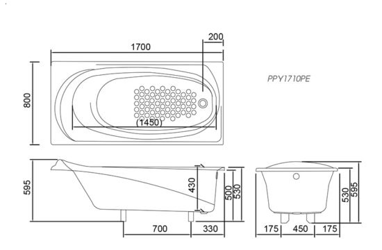 Bản vẽ bồn tắm TOTO PPY1710PE/DB501R-2B