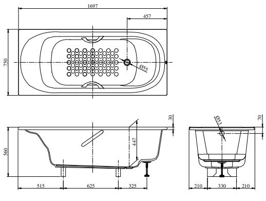 Bản vẽ bồn tắm TOTO PPY1750PE#P-TVBF411