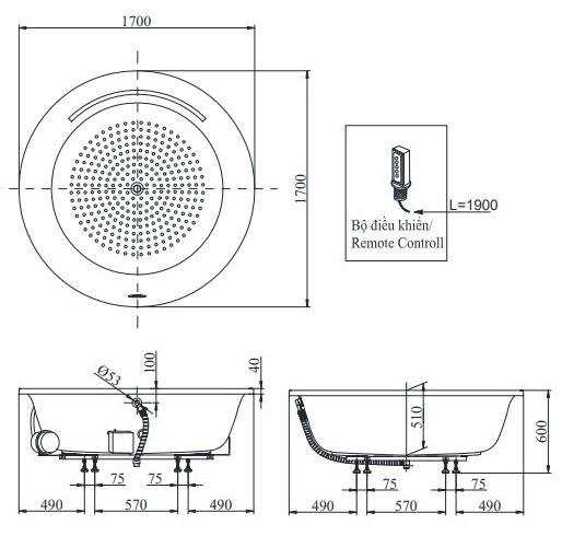 Tên sản phẩm: Bồn tắm ngọc trai chức năng sục khí