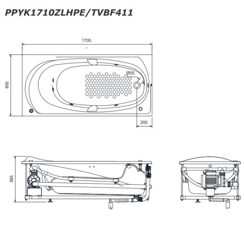 Thông tin cơ bản bồn tắm TOTO PPYK1710ZLHPE#P/DB501R-2B massage