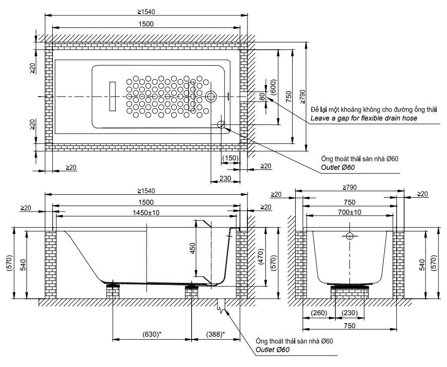 Thông tin cơ bản bồn tắm TOTO PAY1580D#W/DB501R-2B/TVBF412
