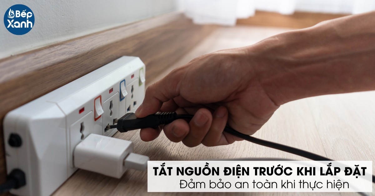 Ngoài ra, điều quan trọng nhất là phải kiểm tra nguồn công tắc điện đang ở trạng thái tắt (off) không có điện. Việc lắp đặt máy hút mùi đảo phải do người có chuyên môn thực hiện và phải đeo găng tay bảo hộ để đảm bảo cho quá trình lắp đặt máy hút mùi được diễn ra an toàn, không có tai nạn về điện giật xảy ra hay những sự cố ngoài ý muốn.