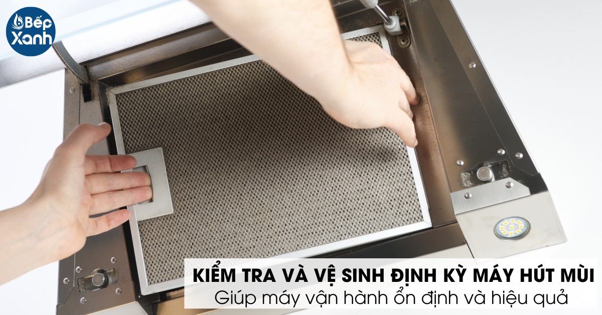 Khi vệ sinh máy hút mùi người dùng cần lưu ý phải vệ sinh cả bên trong lẫn bên ngoài và dùng nước tẩy rửa trung tính để không ăn mòn máy. Với một số máy hút mùi hiện đại có tính năng thông báo vệ sinh lưới lọc cực kỳ tiện lợi, nhắc nhở người dùng vệ sinh máy đúng hạn.