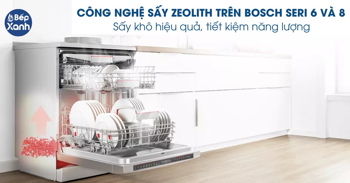 Đối với dòng serie 6 và serie 8, Bosch đã áp dụng công nghệ sấy bằng đá tự nhiên Zeolith. Công nghệ này không chỉ giúp sấy chén dĩa nhanh chóng và hiệu quả hơn, mà còn tiết kiệm năng lượng và không đòi hỏi bảo trì suốt đời.