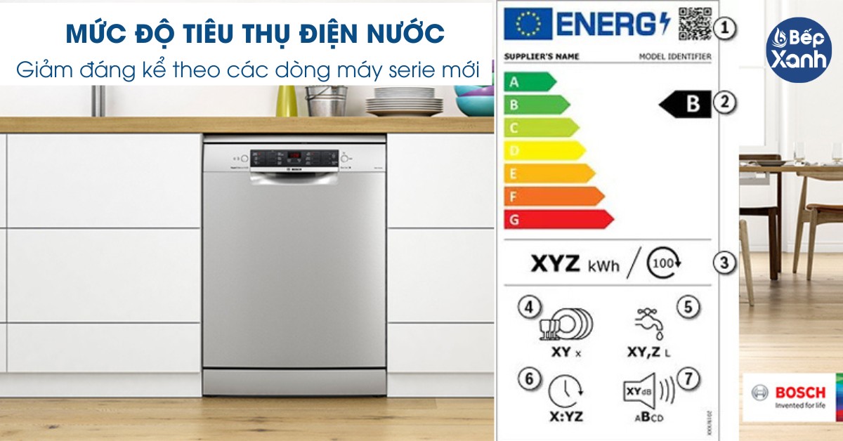 Máy rửa bát Bosch được xem là sản phẩm tiết kiệm điện và nước hàng đầu trên thị trường hiện nay, được đánh giá bởi nhãn năng lượng trên mức A. Đặc biệt, các dòng máy có số serie càng cao, khả năng tiết kiệm điện và nước càng vượt trội. Các mẫu máy thuộc dòng serie 8 thường được trang bị nhãn năng lượng cao nhất là A+++.