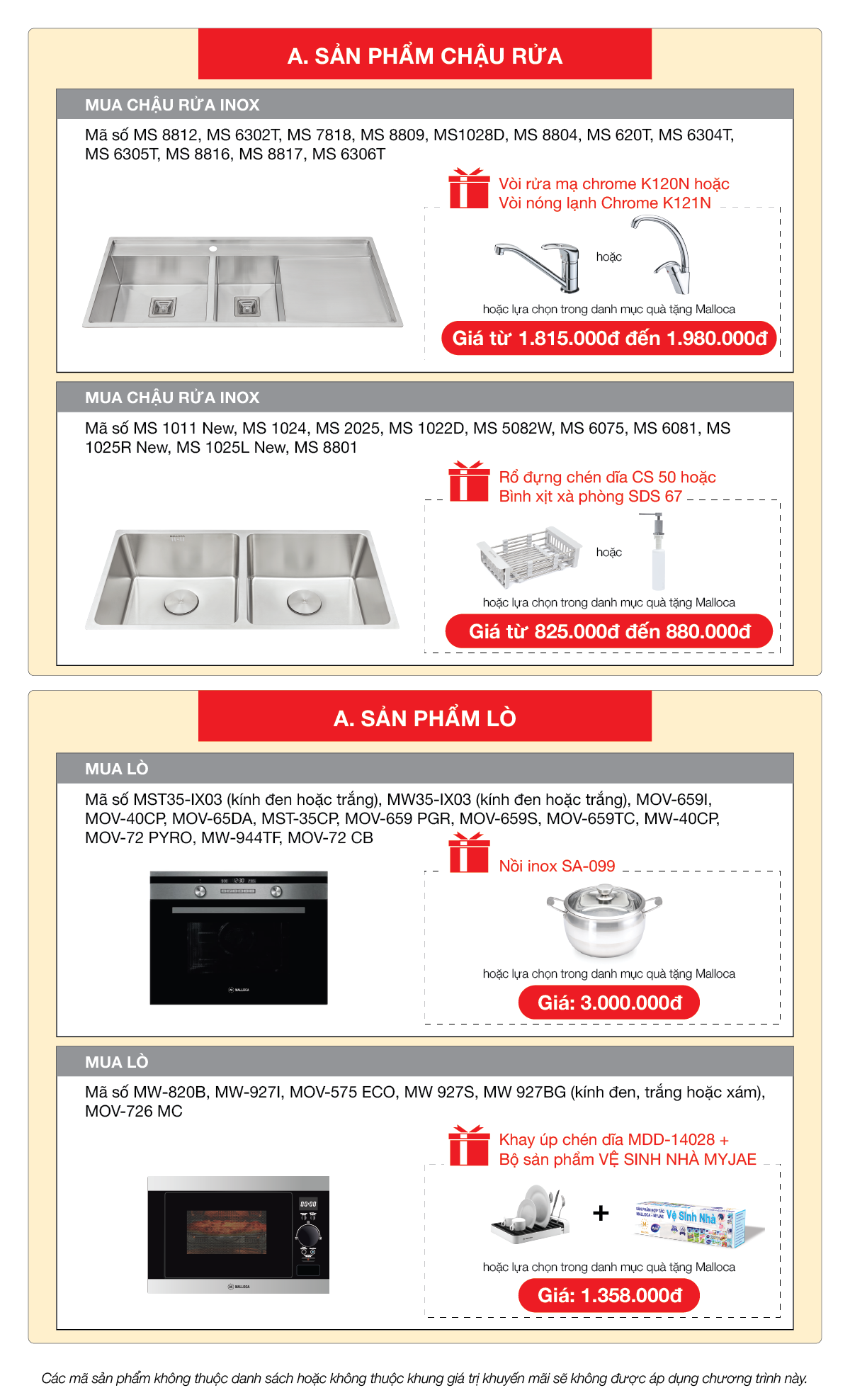 CÁC SẢN PHẨM CHẬU RỬA MALLOCA ĐANG KHUYẾN MÃI:CÁC SẢN PHẨM LÒ NƯỚNG MALLOCA ĐANG KHUYẾN MÃI: