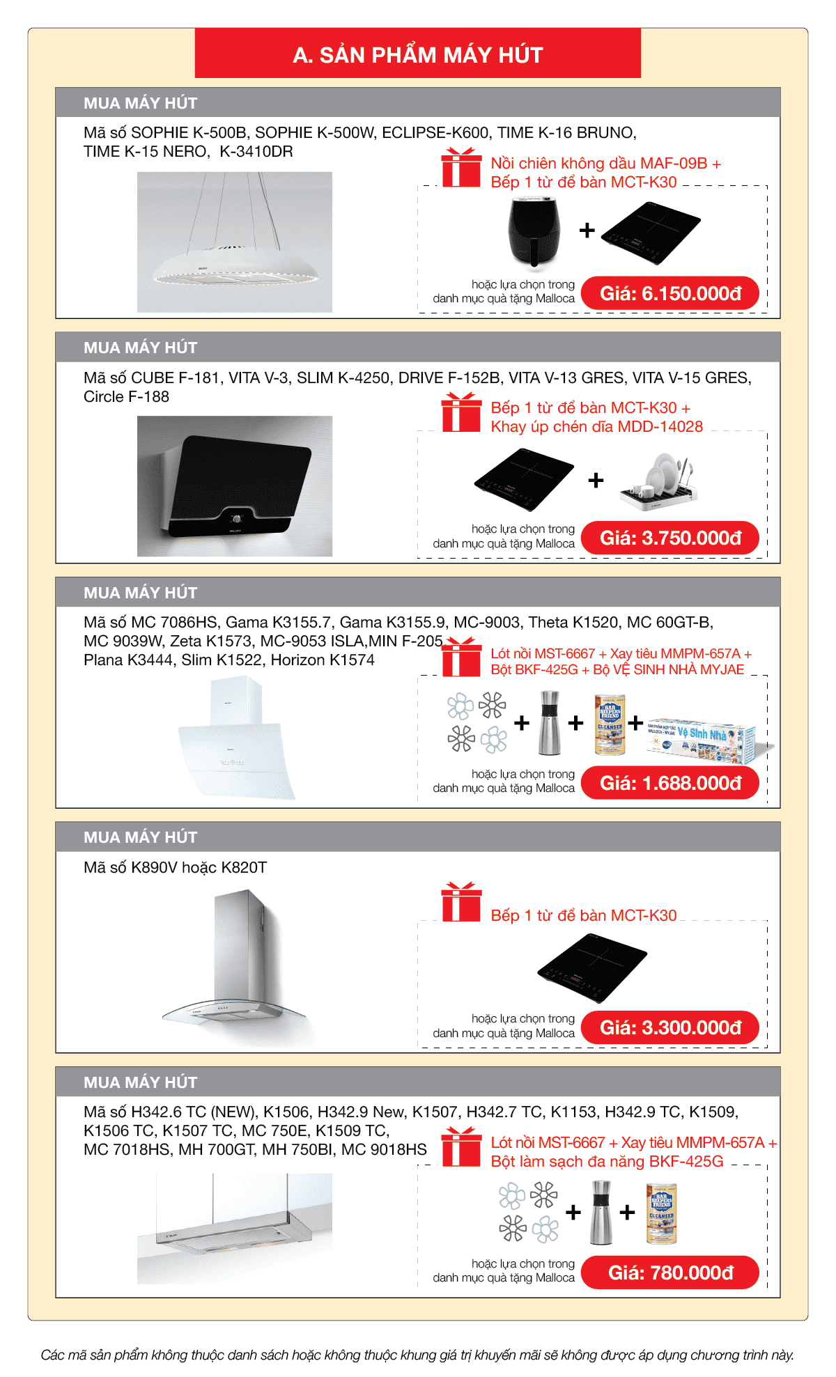 CÁC SẢN PHẨM MÁY HÚT MÙI MALLOCA ĐANG KHUYẾN MÃI:
