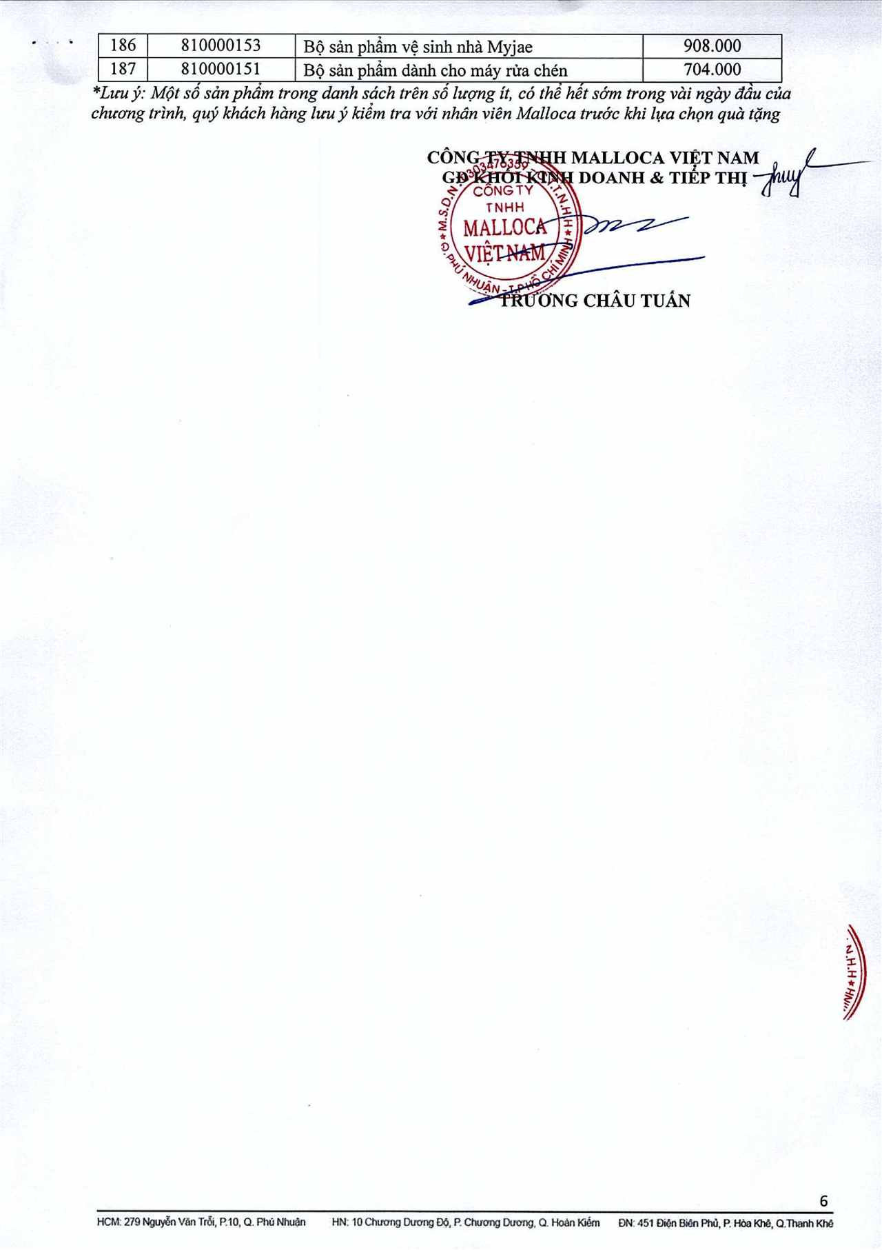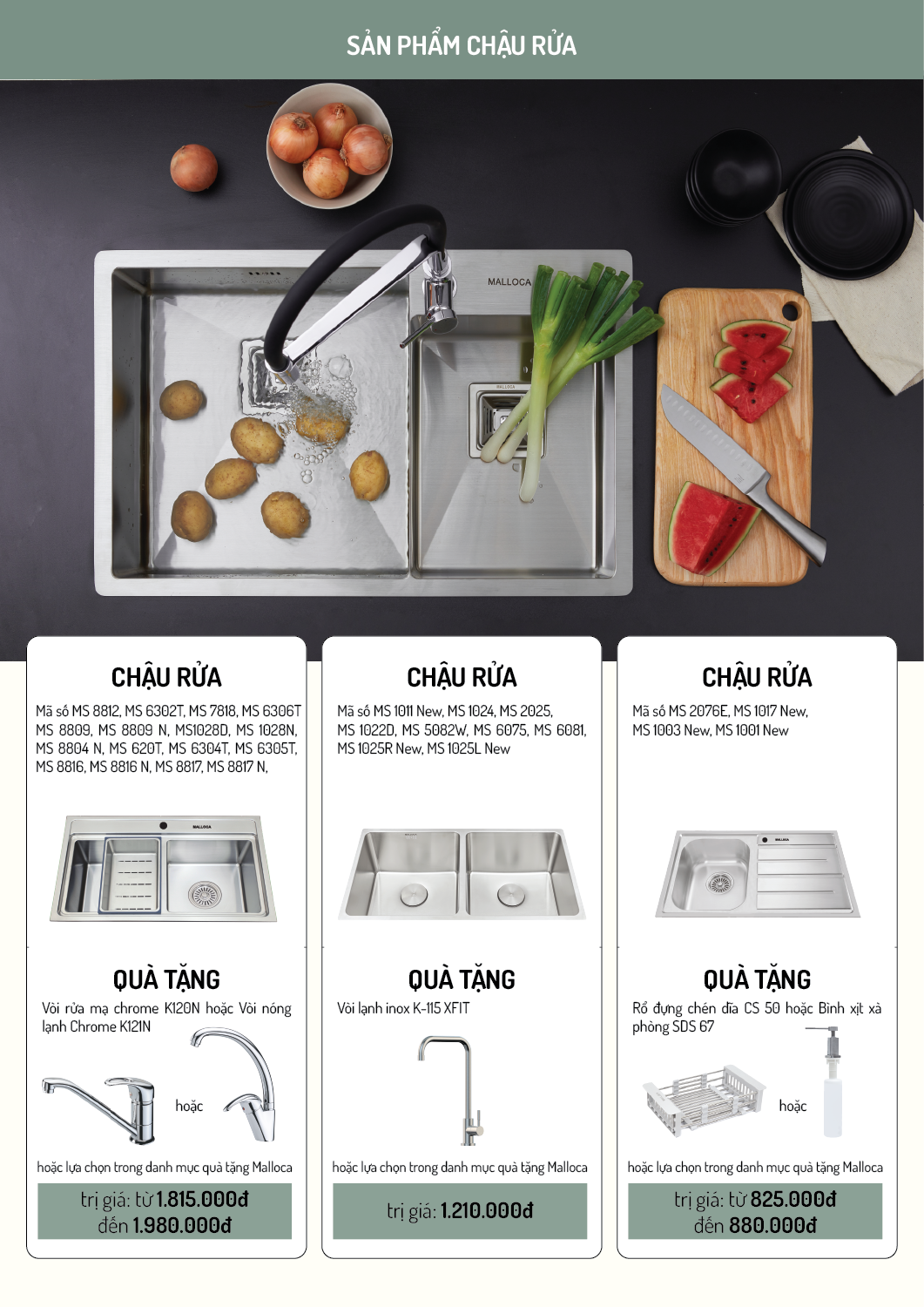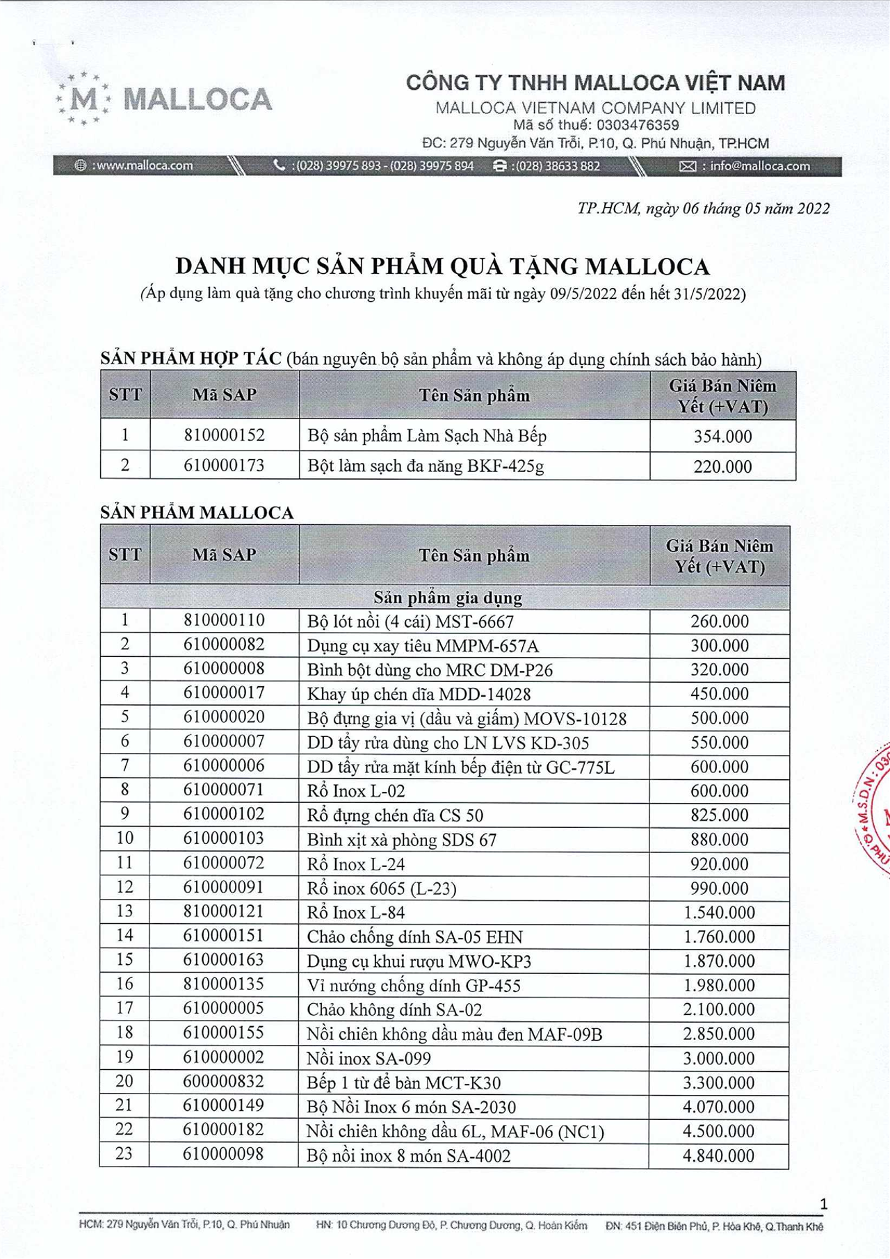Theo đó, khi mua các sản phẩm của hãng Malloca trong chương trình khuyến mãi, khách hàng sẽ nhận được quà tặng với nhiều trị giá khác nhau. Khách hàng lựa chọn 1 trong 2 mục khuyến mãi A - theo sản phẩm hoặc B - theo giá trị đơn hàng.