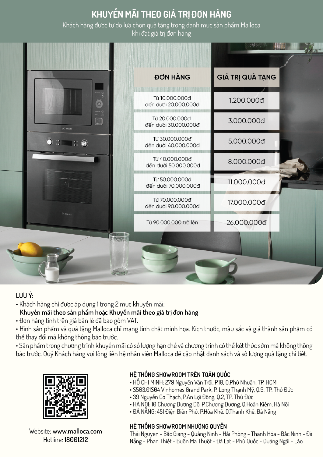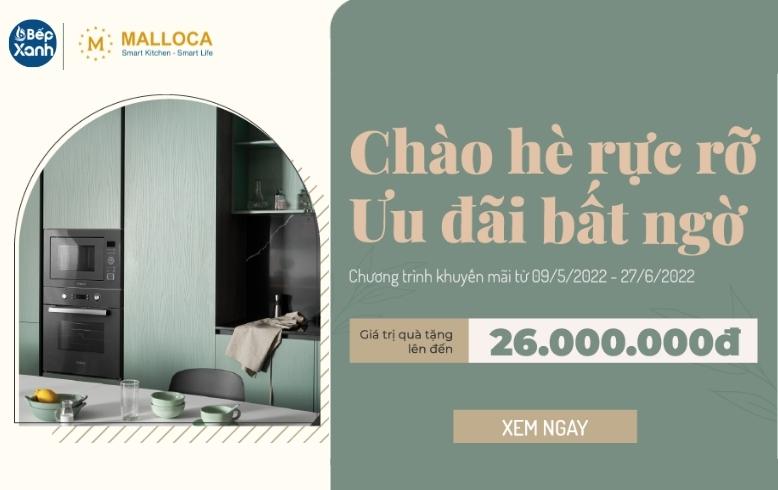Chương trình khuyến mãi Malloca bắt đầu từ ngày 09/05/2022 đến hết 27/06/2022, áp dụng tại tất cả các showroom của Bếp XANH.