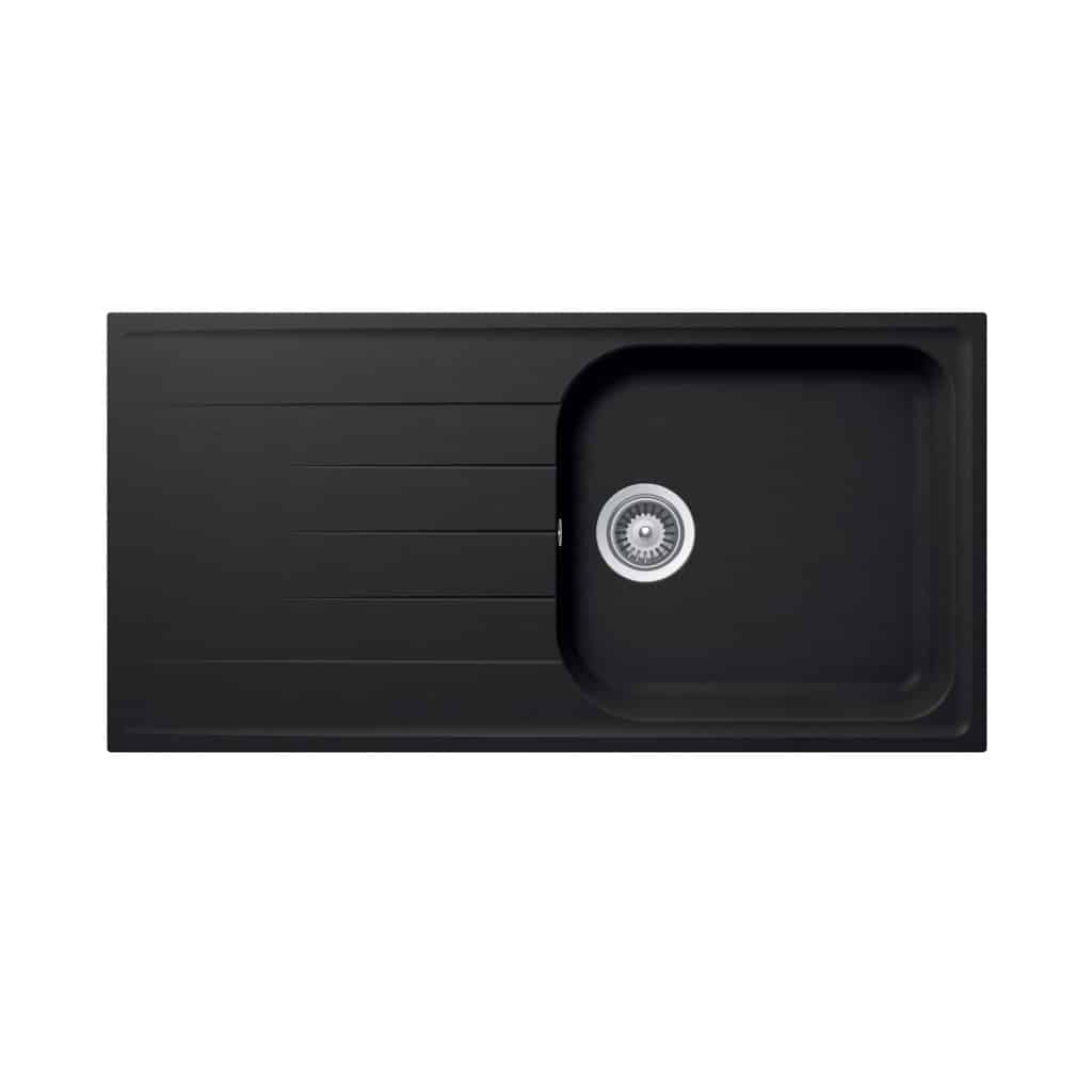 Chậu đá Hafele HS19-GED1R60 570.36.350 - thiết kế màu đen, có một hộc rửa và bàn chờ bên trái