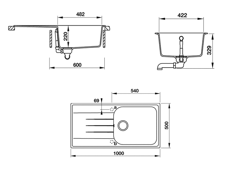 • Độ sâu bồn: 220 mm