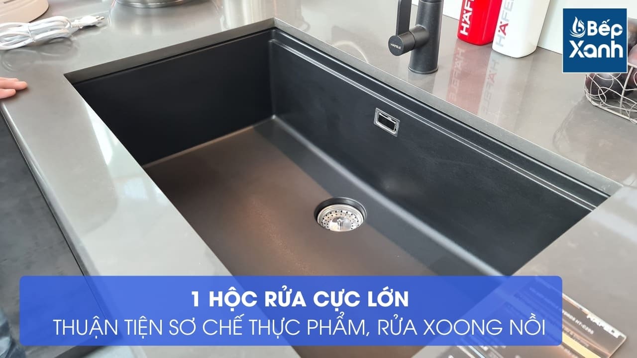 Hafele HS20-GED1S80 570.30.300 là mẫu chậu rửa chén Hafele có kích thước lớn nhất. Với ngăn rửa rộng, không có vách ở giữa như chậu đôi, sản phẩm giúp người nội trợ thoải mái sơ chế thực phẩm hay thậm chí rửa chén, xoong nồi kích thước lớn rất tiện lợi.