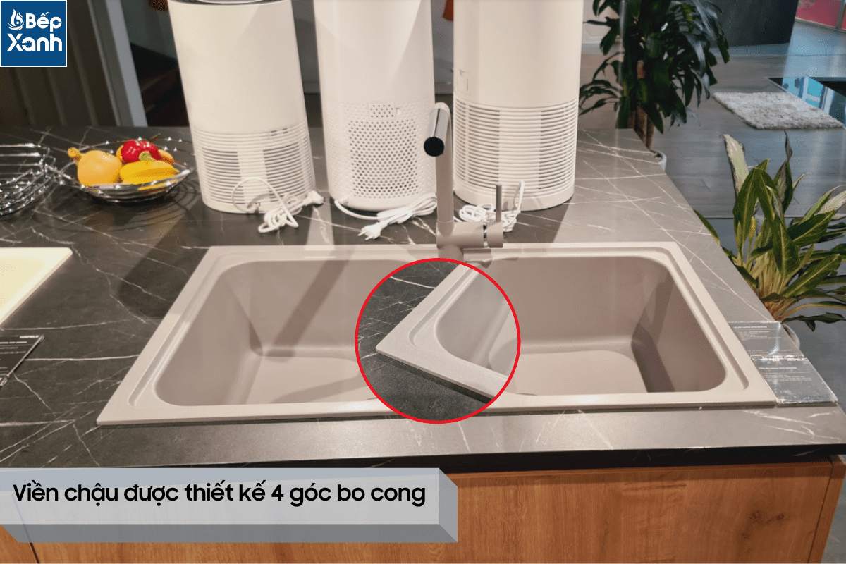 Lòng chậu được thiết kế rất sâu với chiều sâu 20.5 cm, lòng chậu sâu giúp chúng ta khi rửa không bị nước văng lên người.