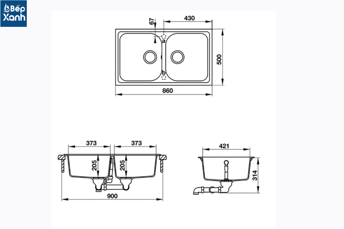 HS19-GEN2R90 với chiều ngang là 86 cm thì chậu được chia làm hai ngăn rửa rộng rãi với kích thước mỗi ngăn rửa là 37.3 x 42.1 cm.