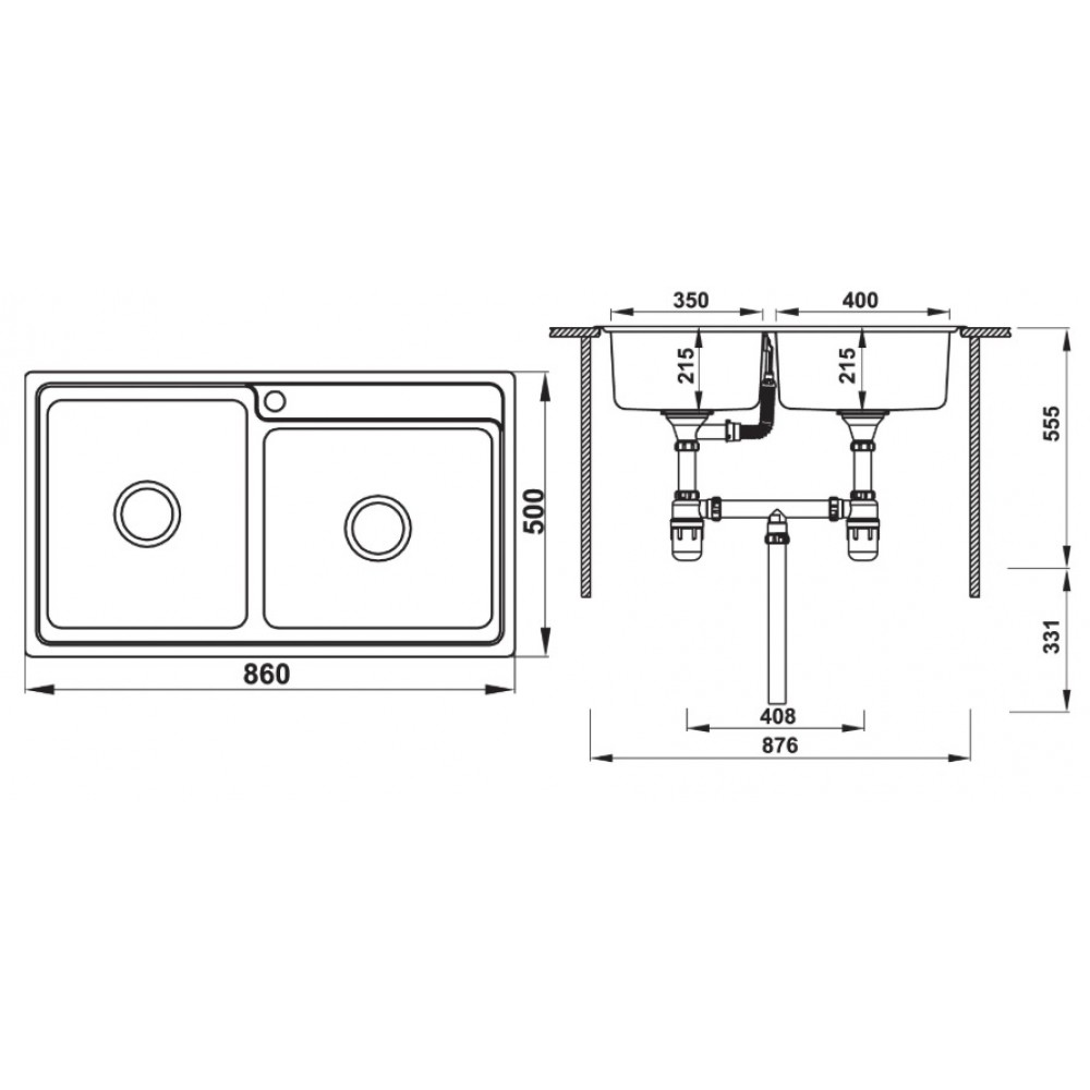 CHẬU RỬA BÁT HAFELE VALERIAN HS-SD8650 567.20.546 HAI HỘC LỆCH