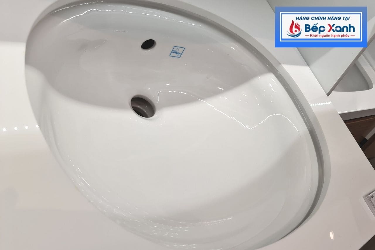 Lòng chậu thiết kế theo kiểu dồn nước xả nước nhanh chóng, có độ sâu vừa phải, diện tích bề mặt nước nhiều, rộng rãi tạo cảm giác thoải mái để người dùng rửa mặt, vệ sinh hàng ngày.