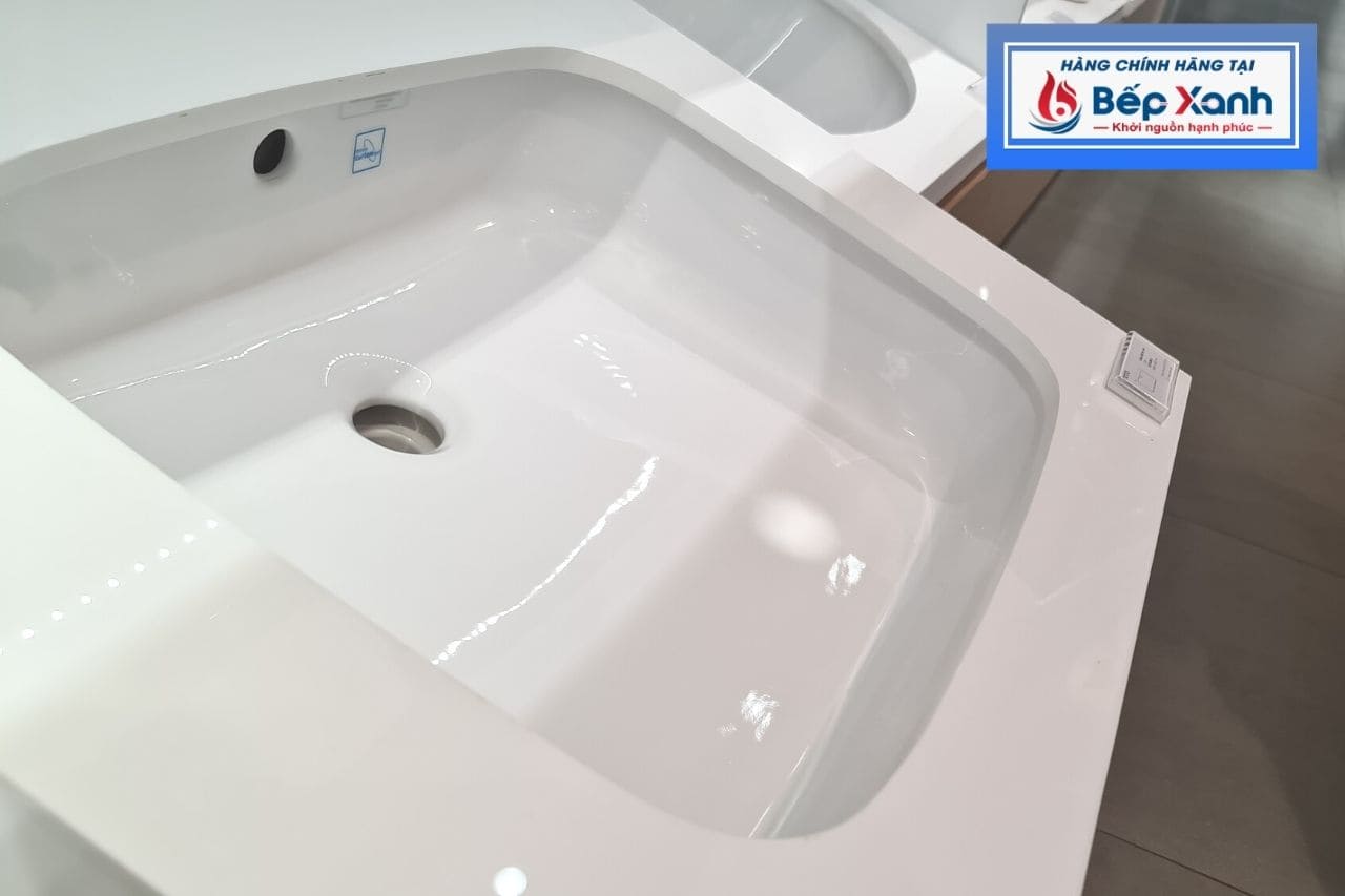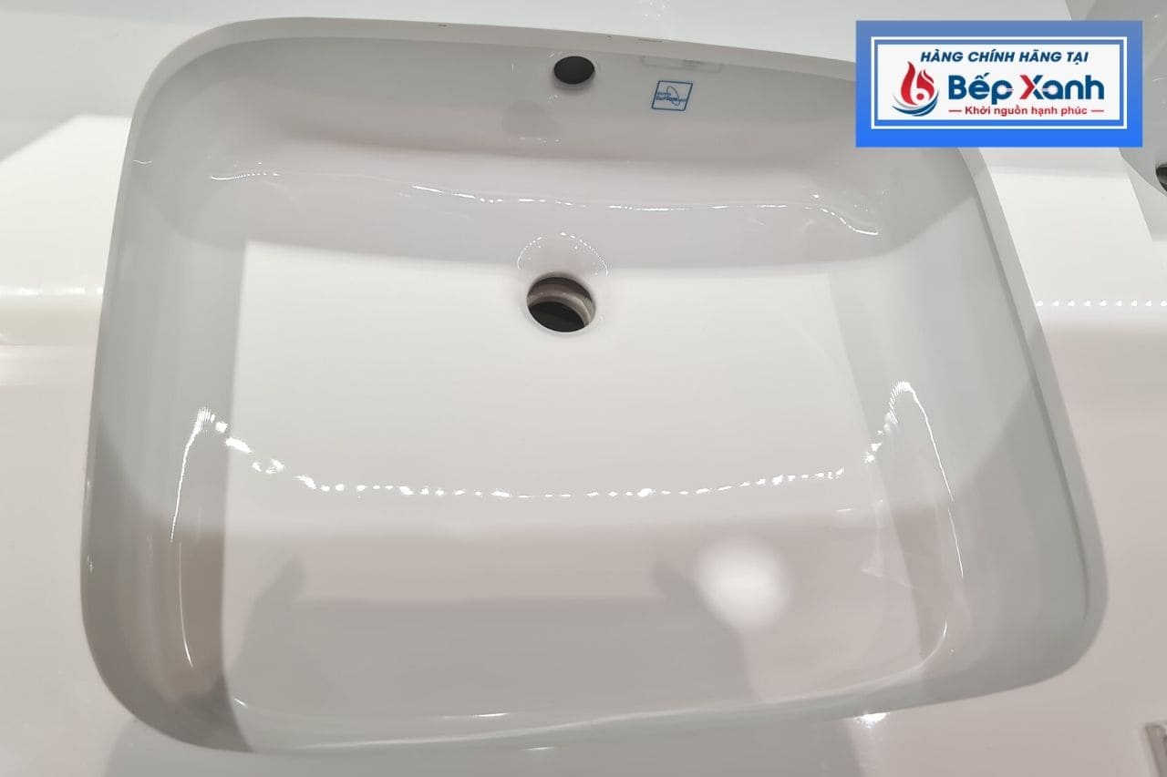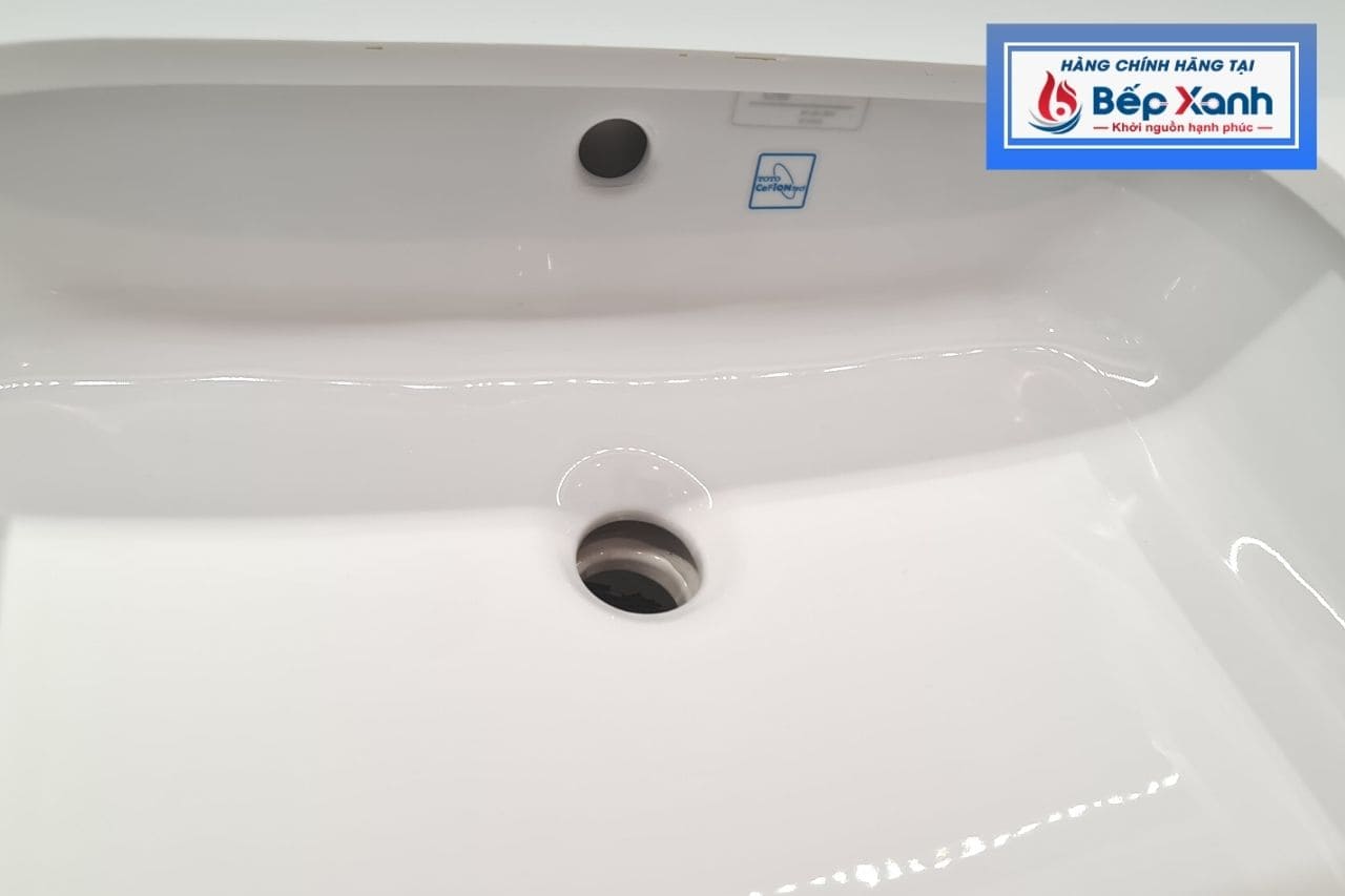 Lòng chậu thiết kế theo kiểu dồn nước xả nước nhanh chóng, độ sâu vừa phải, diện tích bề mặt nước nhiều, rộng rãi tạo cảm giác thoải mái để người dùng rửa mặt, vệ sinh hàng ngày.