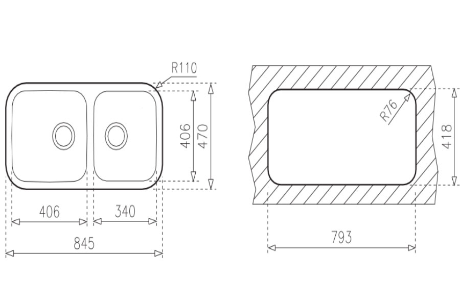 Đặc biệt, Kích thước tổng thể chậu (RxC), 845 x 470 mm với kích thước này người sử dụng có thể lắp đặt dễ dàng phù hợp với mọi không gian bếp. Và chiều sâu của hố nằm trong khoảng 23-27cm sẽ hạn chế nước bắn ra ngoài giúp căn bếp luôn sạch sẽ hơn khi chưa kịp lau chùi. Bên cạnh đó, Chậu rửa âm Teka BE 2B 845 có cách lắp đặt Inset, có thể đảo ngược rất tiện khi sử dụng.