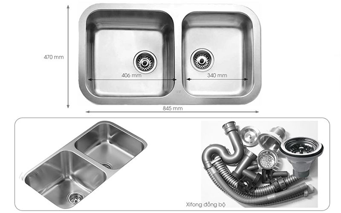 Nhập khẩu trực tiếp từ Châu Âu Chậu rửa hai hố lắp âm bàn đá Chất liệu thép không gỉ sáng mịn Cách lắp đặt Inset, có thể đảo ngược rất tiện khi sử dụng Hệ thống xifong đồng bộ với tốc độ thoát nước nhanh | |
