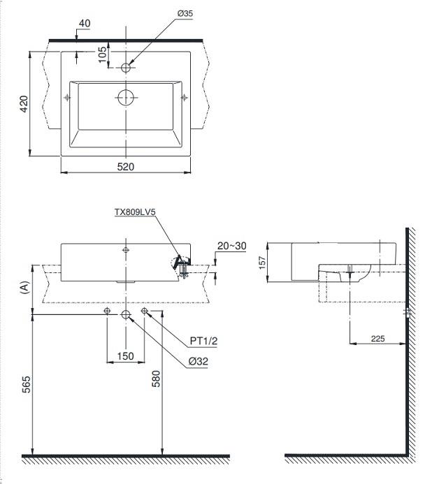 Kích thước lắp đặt chậu rửa bán âm bàn TOTO LT647CR