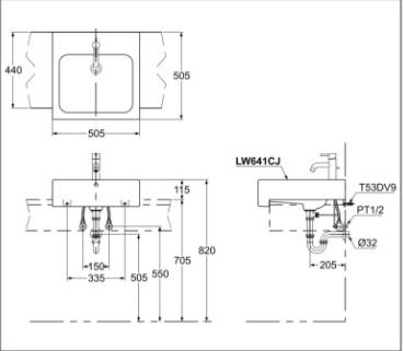 Bản vẽ kỹ thuật chậu rửa mặt TOTO LW641NCJW/F