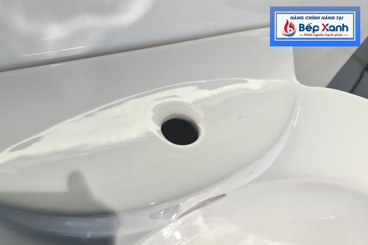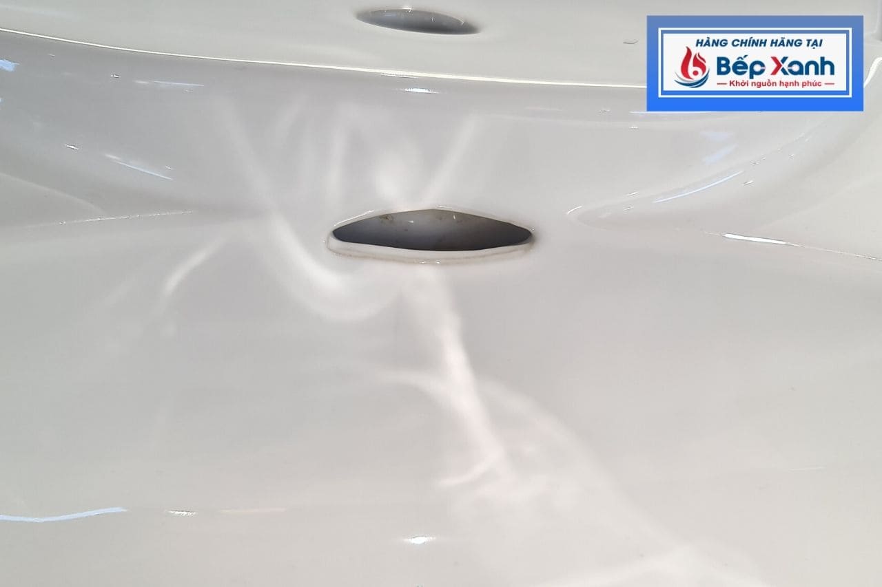 Ngoài ra, thiết kế có lỗ thoát tràn giúp xử lý nhanh khi lượng nước xả quá nhiều, tránh tình trạng tràn xuống sàn nhà gây mất thẩm mỹ và bảo vệ an toàn cho người dùng khi đi lại trong phòng tắm.