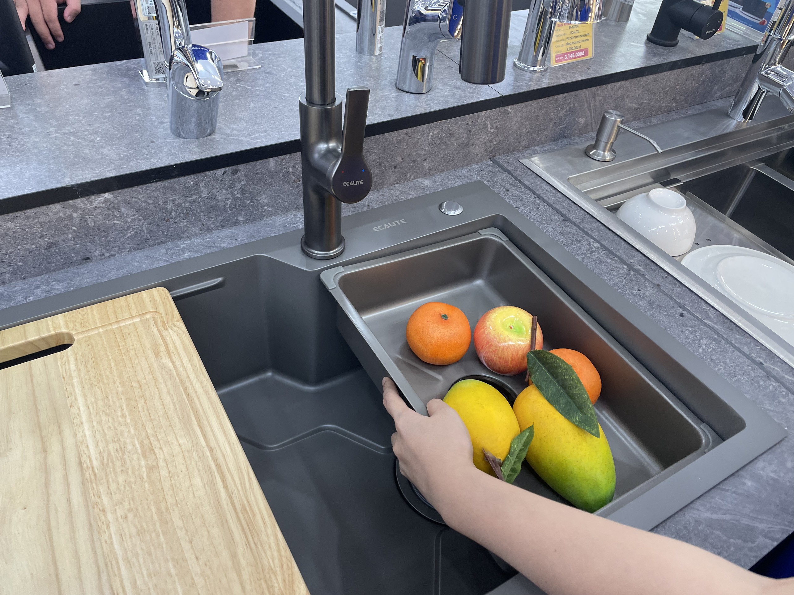 Sử dụng chậu hàng ngày, bạn lại càng thích chậu hơn khi hãng Ecalite trang bị cho chậu 1 chậu rửa phụ. Bạn có thể ngâm rau ở rổ nhỏ, sử dụng rổ lớn để rửa các thực phẩm khác giúp tối ưu không gian.