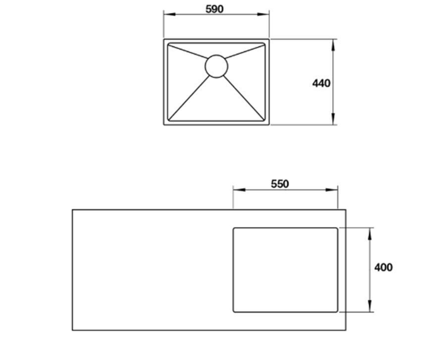 – Kích thước cắt đá: 560D x 410R mm. | |