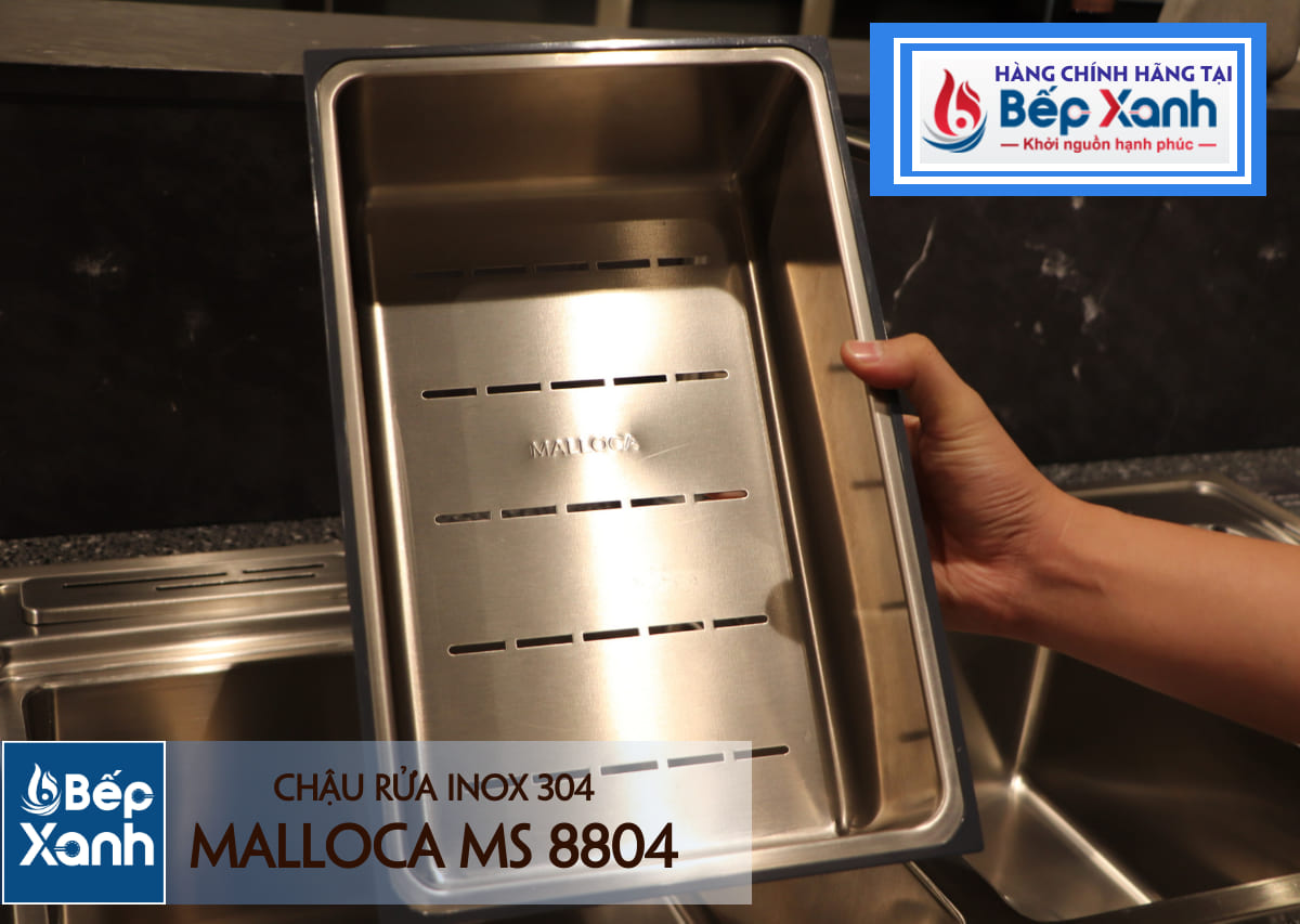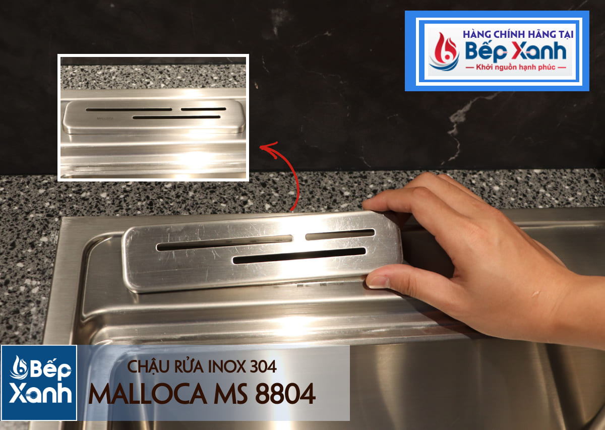 Chậu rửa chén có chỗ cắm dao được nhiều người dùng ưa thích, và chậu rửa chén Malloca MS 8804 được tích hợp luôn cả giắt cắm dao này ngay trên chậu. Do đó, bạn có thể cắm đến 3-4 thanh dao ở trên để thuận tiện hơn trong việc chế biến thực phẩm.