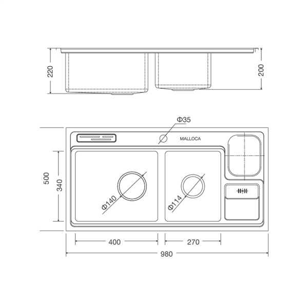 Với thiết kế chậu rộng rãi thế này, khi kết hợp với các mẫu vòi inox Malloca có thêm dây rút sẽ giúp người nội trợ rửa chén, sơ chế thực phẩm, rau quả cũng như vệ sinh mọi ngóc ngách chậu dễ dàng hơn. Chậu bên trái