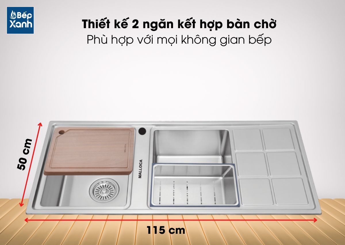 Chậu rửa chén Malloca MS 8815R là dòng chậu inox 2 ngăn tích hợp bàn chờ của hãng Malloca được nhiều khách hàng lựa chọn sử dụng cho gia đình hiện nay. Nhờ sở hữu kiểu dáng hiện đại, chất liệu inox 304 có độ bền cao, dễ vệ sinh, chậu còn trang bị nhiều chức năng phục vụ được mọi nhu cầu của người tiêu dùng.