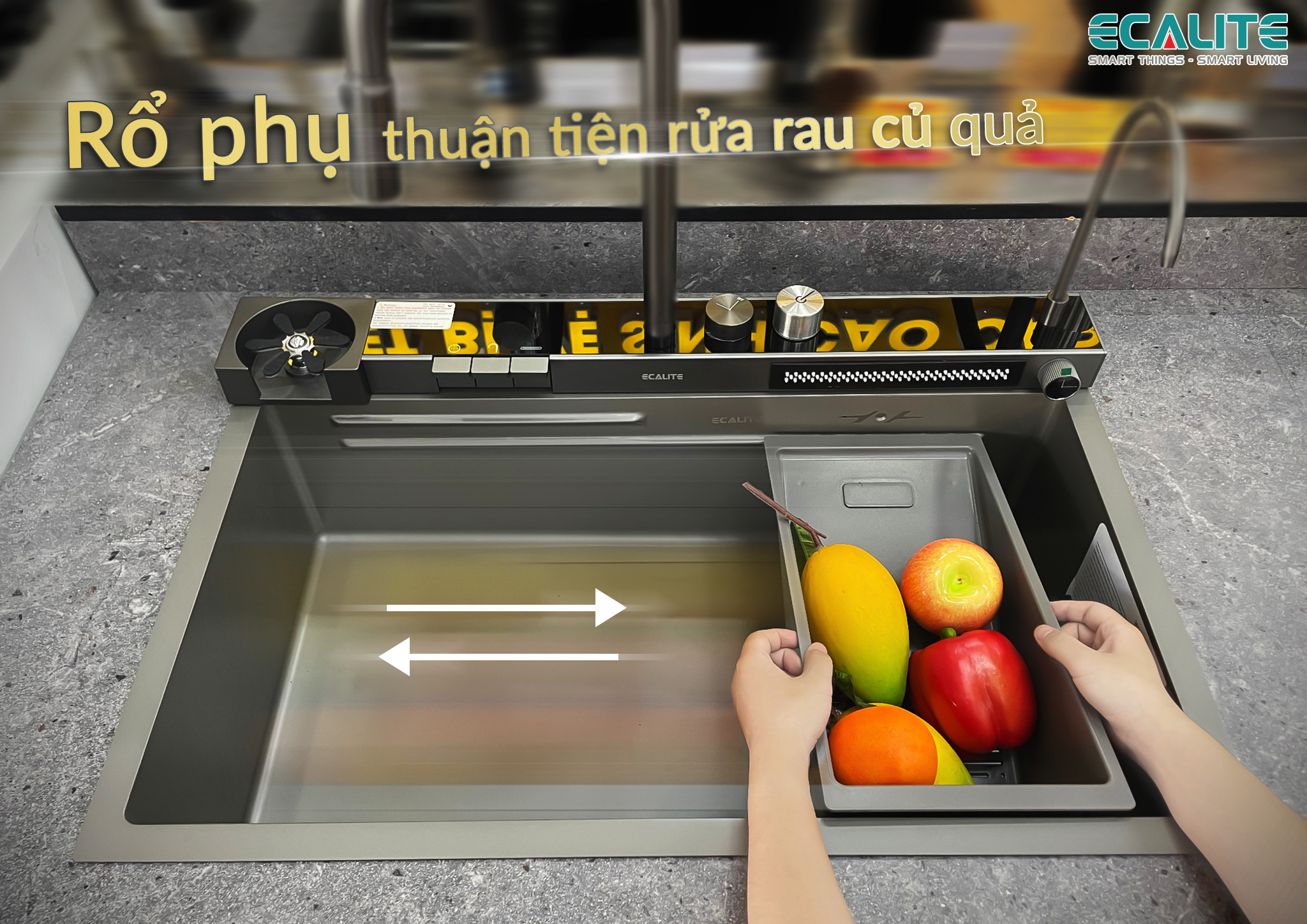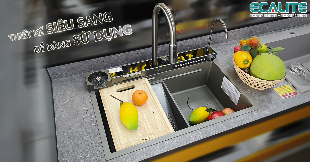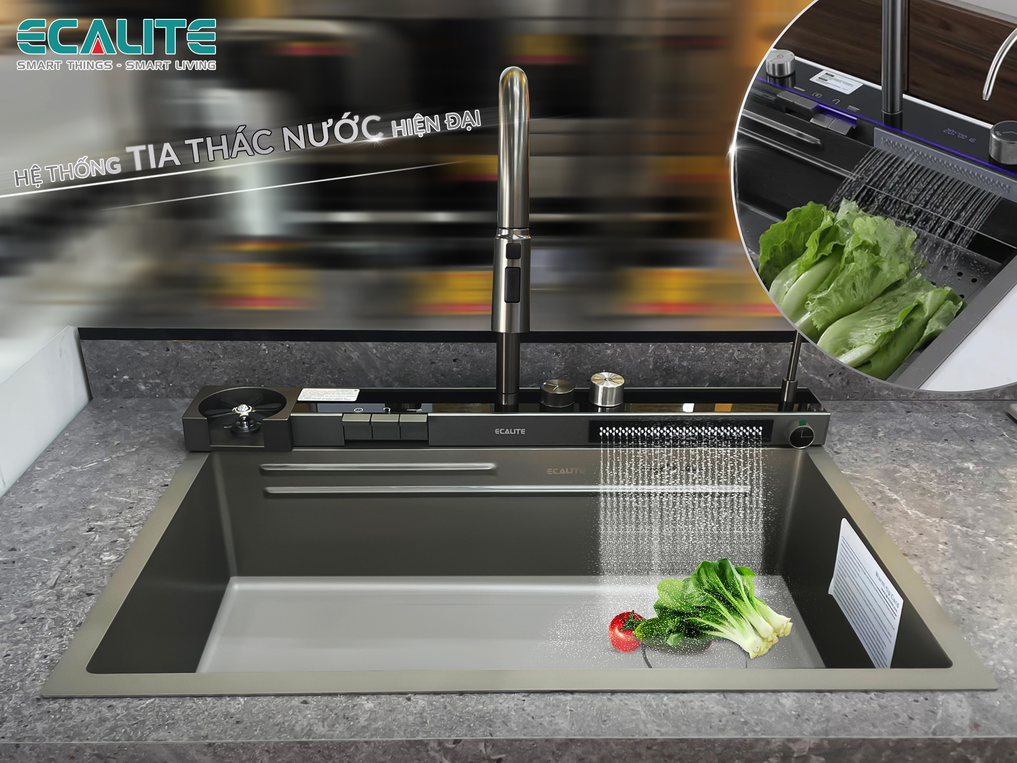 Chậu rửa chén thông minh Waterfall Ecalite ES-N2310WF-S được bảo hành chính hãng 3 năm tại nhà.