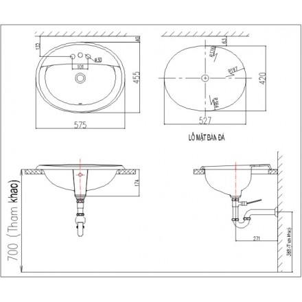 Bản vẽ kỹ thuật chậu lavabo L-2395V