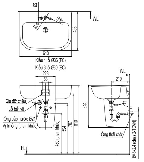 Thông tin Sản phẩm Chậu rửa Inax treo tường L-298V + L-298VC :