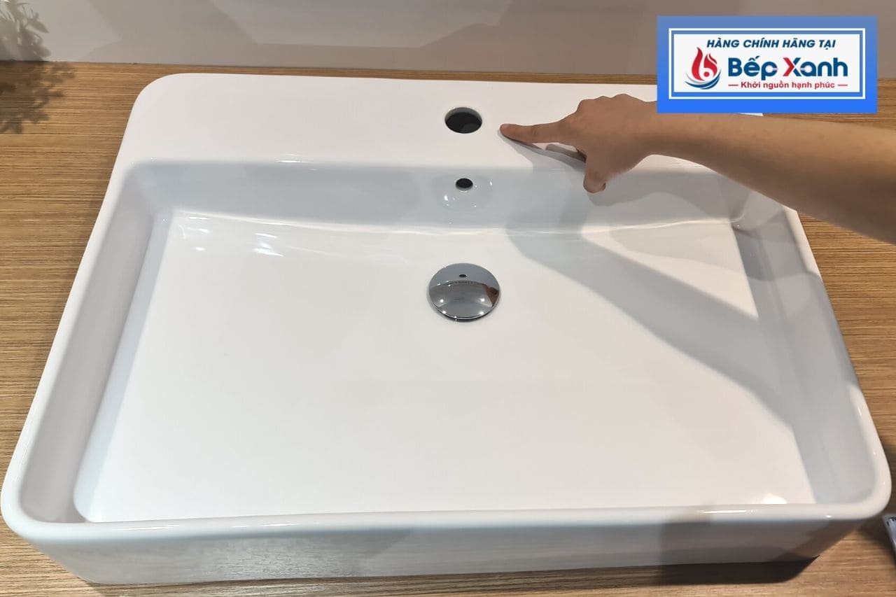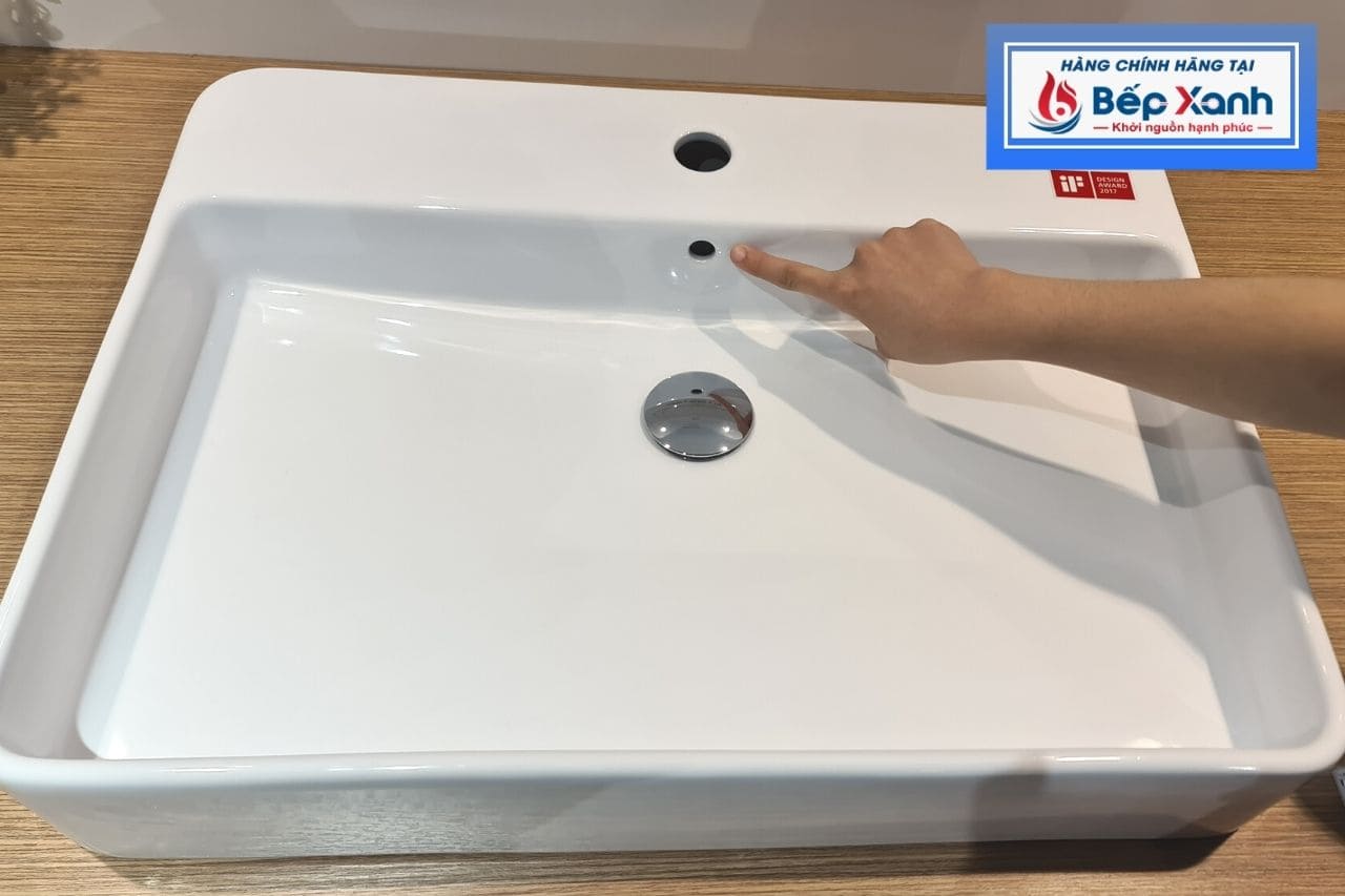 Sản phẩm còn trang bị thêm một lỗ xả tràn để thoát nước kịp thời khi bộ xả chính chưa xử lý kịp, giảm thiểu tối đa tình trạng tràn nước xuống sàn nhà, gây mất vệ sinh cho không gian phòng tắm.