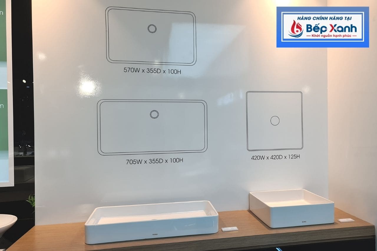 Chậu TOTO LT952 có kích thướcL355 x W570 x H132 mm giúp lòng chậu có độ sâu vừa phải, diện tích bề mặt nước nhiều, rộng rãi tạo cảm giác thoải mái để người dùng rửa mặt, vệ sinh hàng ngày. Bên cạnh đó, thiết kế đặt bàn giúp thu hẹp khoảng cách giữa chậu và vòi, lượng nước từ vòi xả xuống êm ái, không bị văng nước dù xả mạnh.