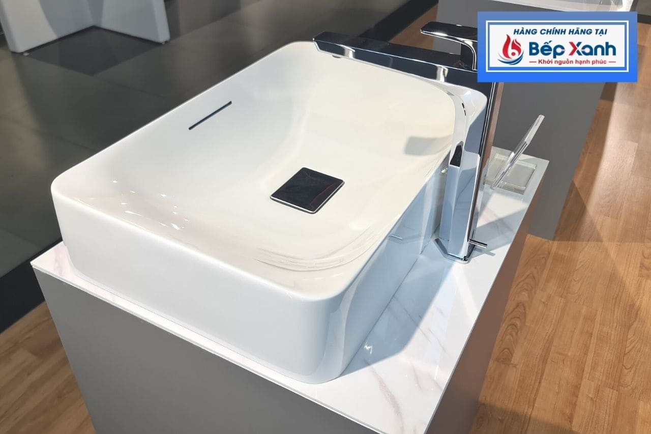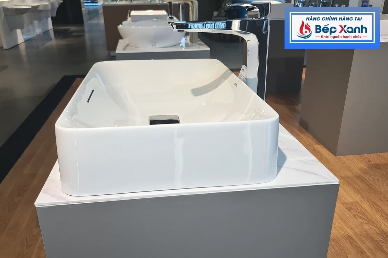 Chậu rửa đá có thể kết hợp với nhiều loại vòi chậu khác nhau, đặc biệt phù hợp với các loại vòi chậu gật gù nóng TOTO