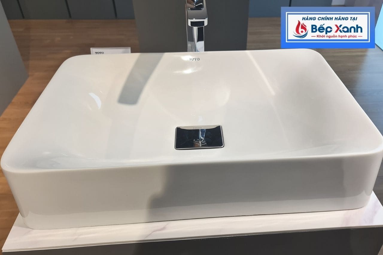 Chậu rửa TOTO là chậu rửa đặt bàn nên toàn bộ sản phẩm sẽ nằm nổi trên bề mặt bàn đá tạo sự chắc chắc và vô cùng nổi bật. Thiết kế dạng hình chữ nhật với 4 góc bo cong tạo nên đường nét nhẹ nhàng, tinh tế cho không gian phòng tắm. Đặc biệt với các không gian phòng tắm rộng yêu cầu tính sang trọng cao thì không nên bỏ qua thiết kế dạng này. Với gam trắng bóng thu hút có thể kết hợp với nhiều thiết bị phòng tắm khác mang đến vẻ đẹp hài hòa, sang trọng cho tổng thể.