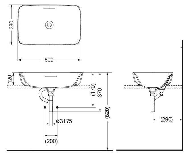 Kích thước lắp đặt chậu rửa đặt bàn TOTO JPS06WE#GW