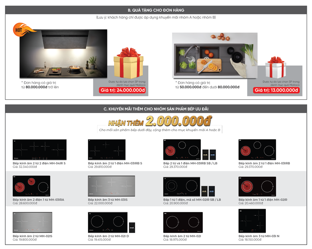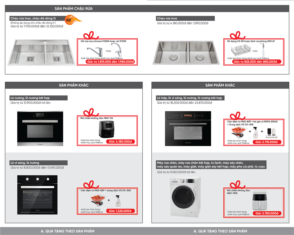 Với vai trò là đại lý chính thức, Showroom Bếp XANH luôn áp dụng các chương trình khuyến mãi của hãng tại thời điểm khách hàng chọn mua sản phẩm Malloca, do đó bạn có thể mua sắm được các sản phẩm Malloca tại Showroom Bếp XANH với giá cực kỳ ưu đãi và nhiều khuyến mãi hấp dẫn.