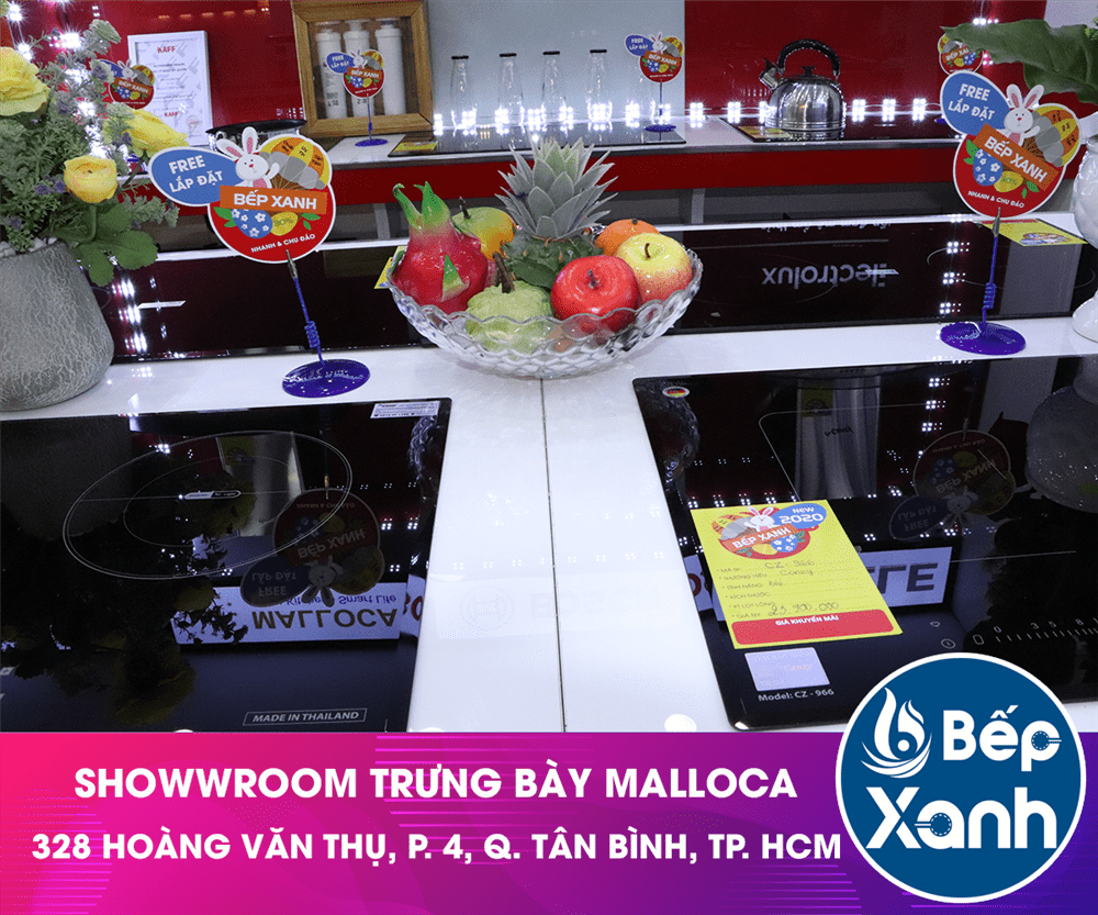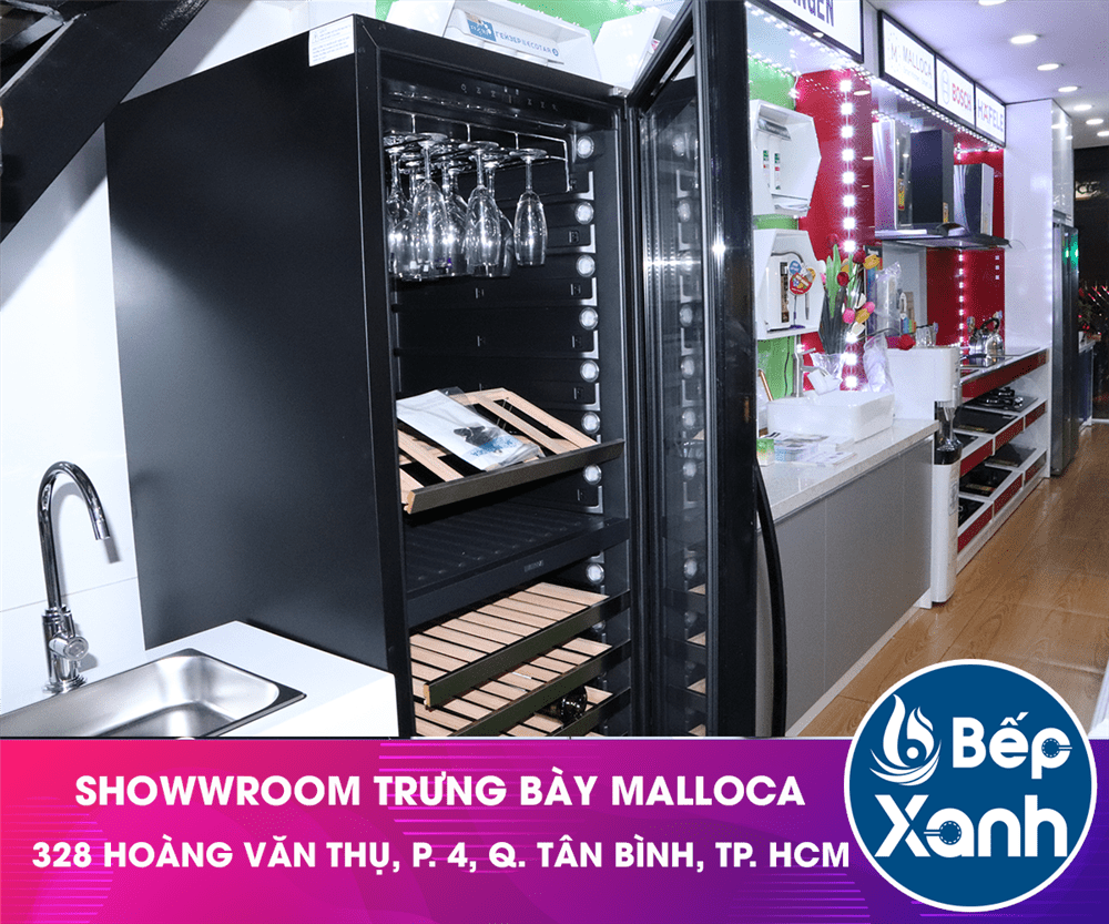 Các sản phẩm Malloca trưng bày tại Showroom Bếp XANH: 328 Hoàng Văn Thụ, Phường 4, Quận Tân Bình, TP. Hồ Chí Minh đa dạng, bao gồm các loại Bếp, tủ rượu.