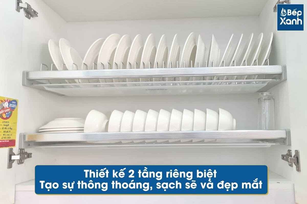Thiết kế 2 tầng cất giữ được nhiều chén đĩa cùng lúc