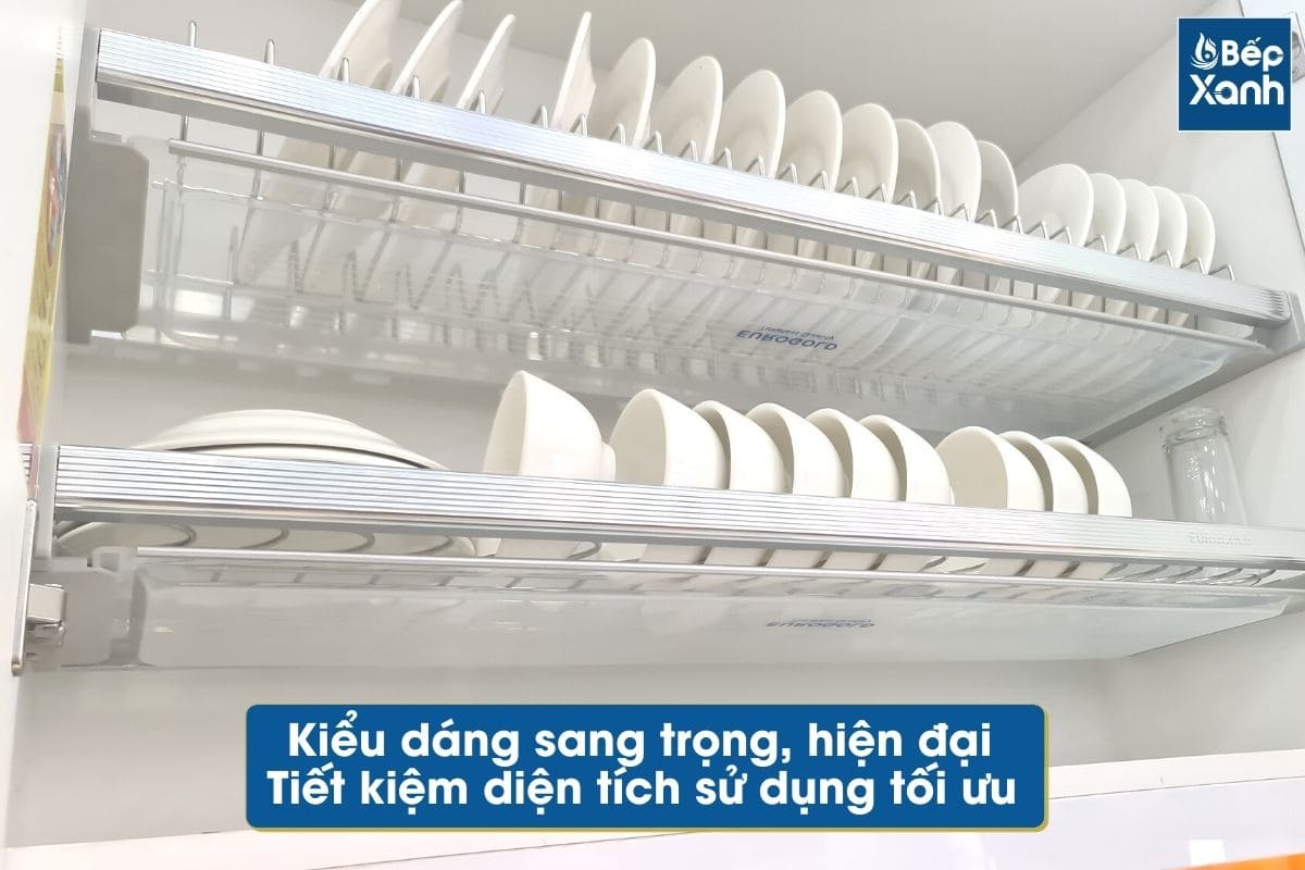 Giá bát đĩa EPS900 được thiết kế với hai tầng riêng biệt, khoảng cách giữa 2 tầng được tính toán hợp lý tạo được sự thông thoáng nhưng không chiếm quá nhiều diện tích. Ngoài chức năng đựng chén bát, sản phẩm còn tạo cho khoang tủ bếp sự sang trọng, tiện dụng và một không gian nhà bếp khoa học, dễ dùng.