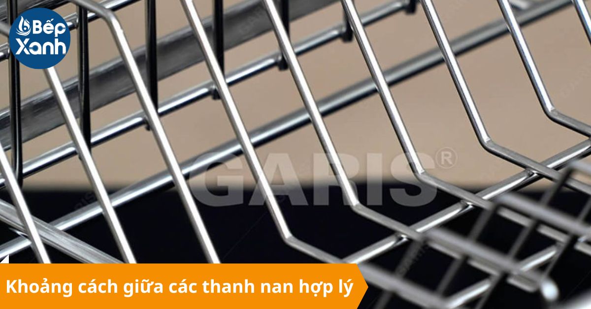 Khoảng cách giữa các thanh nan của giá bát đĩa nâng hạ GL06.70E được tính toán tỉ mỉ trước khi gia công để đảm bảo phù hợp với đa số các loại bát đĩa thông dụng. Thiết kế khoảng cách giữa các thanh nan vừa đủ để bát đĩa có thể bám trụ lại vững vàng, vừa tiết kiệm diện tích một cách tối ưu nhất, giúp người dùng có thể để thêm được nhiều bát đĩa nhất có thể.