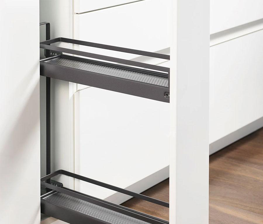 - Sử dụng dễ dàng và tiện lợi: Hafele không ngừng cập nhật các công nghệ mới nên giá chai lọ Hafele 549.24.620 không chỉ có khả năng chịu lực lớn mà còn được thiết kế để người dùng có thể sử dụng một cách tiện lợi và hiệu quả nhất. Với thiết kế 2 tầng, bạn có thể thoải mái lưu trữ nhiều thực phẩm, chai lọ gia vị và lấy chúng khi cần sử dụng một cách nhanh chóng vì chỉ cần thao tác kéo mở cửa tủ là giá chai lọ sẽ tự chuyển động theo nhờ vào ray trượt giảm chấn giúp chuyển động êm ái nhẹ nhàng, không lo gây tiếng ồn ảnh hưởng đến mọi người xung quanh, thiết kế mở rộng toàn phần, dễ dàng kéo toàn bộ đồ vật được đựng trong tủ ra bên ngoài, quan sát đồ vật rõ ràng, lấy đồ thuận tiện. Ngoài ra, bạn dễ dàng điều chỉnh mặt trước 3 chiều của giá chai lọ không cần dụng cụ, cân chỉnh khoảng trống phù hợp chỉ trong vài phút.